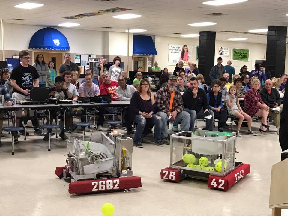 Thank you to everyone that came out to last night’s unveiling of the robots. We are excited for the opportunities this season to showcase our hard work, build alliances with other teams, see how much fuel we can get in the boilers, spread our knowledge on safety, and have a great time. Join us next weekend as we participate in our first tournament of the 2017 season at South Central High School in Winterville. This is the first year that a tournament has beenĀ held in our immediate area. We can’t wait to show the other teams our Pitt Pirates’ hospitality.